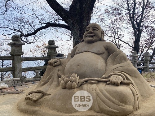산속에 모래 조각이?...양산 미타암에 모래 포대화상 조성돼 눈길